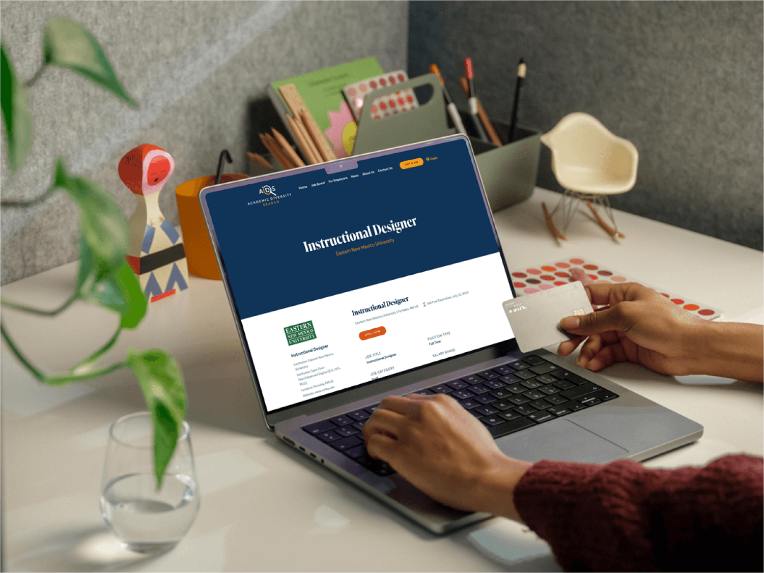 This project has two key users: Applicants and Hiring Managers. We designed an interface that showcases the value of this project to an individual who is wishing to find a job in higher education and research. We used warm and inviting colors, clean and rounded-edges, and photography that represents the target audience. To attract Hiring Managers, we focused on streamlining the posting process and optimizing the admin experience.