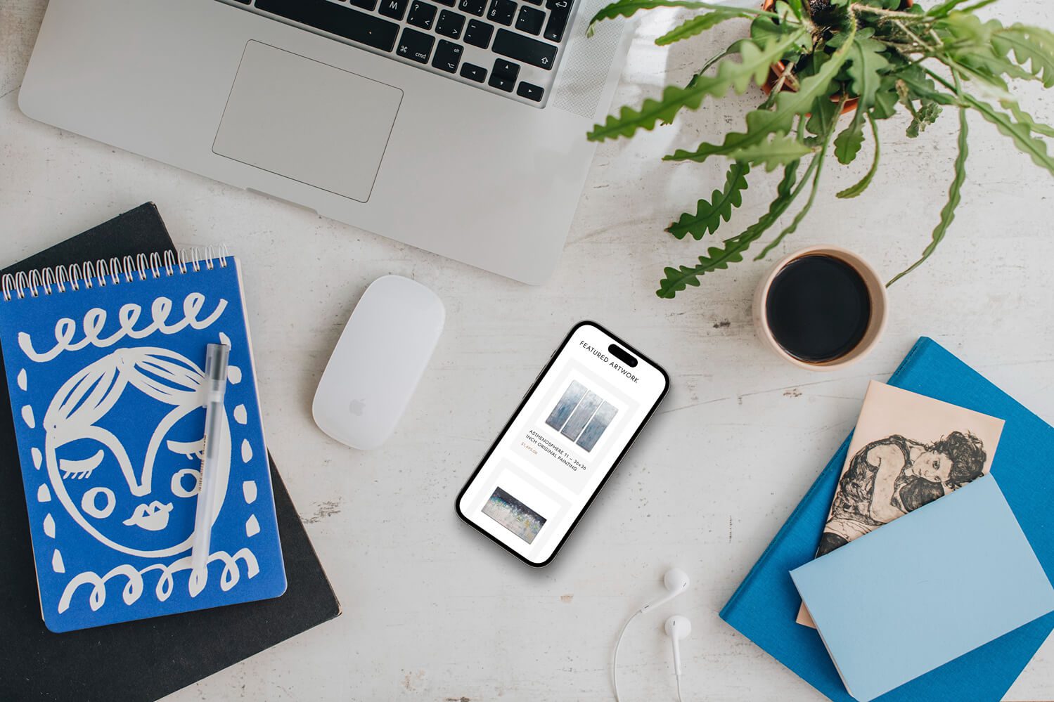 Our design approach was to simply highlight her art. Hilary’s use of color and abstraction is the focal point of this project. It was important the website design did not distract from the ultimate subject of the site, her art!